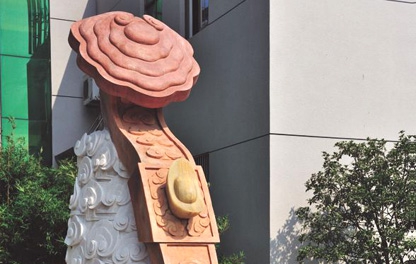 上古時期的炎帝和黃帝被尊為中華民族的始祖,華夏文明杰出的貢獻者。炎帝即神農氏,又是中國農耕文化的創始者。傳說神農嘗百草,著《神農本草》,教人食藥醫病。黃帝即軒轅氏,發明頗多,如教人熟食、制衣冠等。他依照《陰符經》治國強民,百姓安居樂業。《路史》等古籍記載:神農氏由赤松子授芝于昆侖,軒轅氏由廣成子授芝于崆峒山。雕塑據此設計制作。